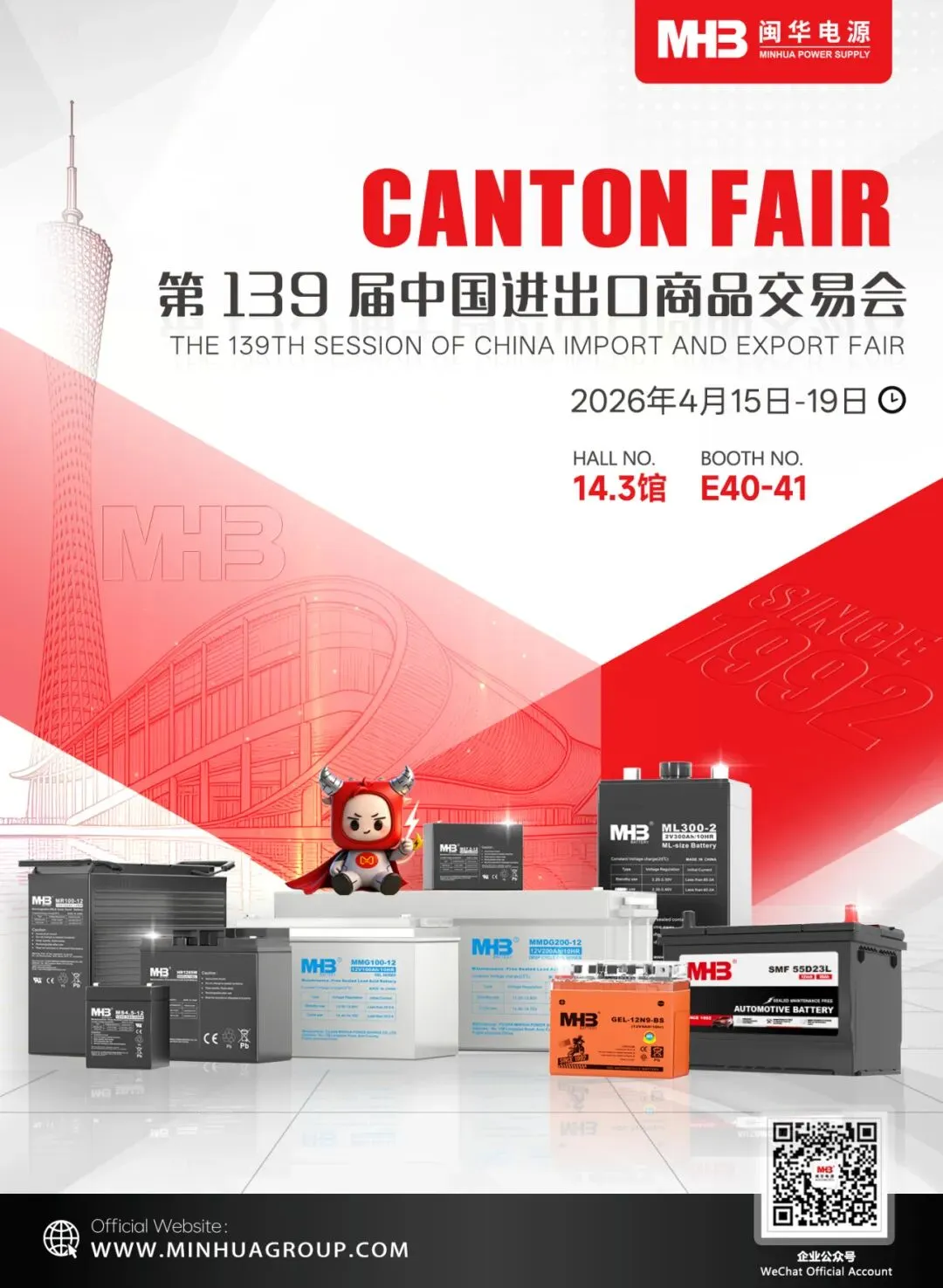 春风送暖,商机涌动!第 139 届中国进出口商品交易会(广交会)即将于2026 年 4 月 15 日至 19 日盛大启幕。福建省闽华电源股份有限公司诚挚邀请您莅临我们的展位14.3 馆 E40-41,共话合作,共探行业新趋势!