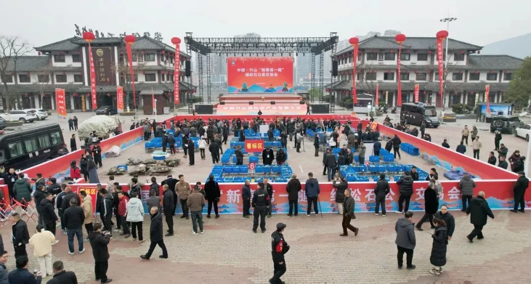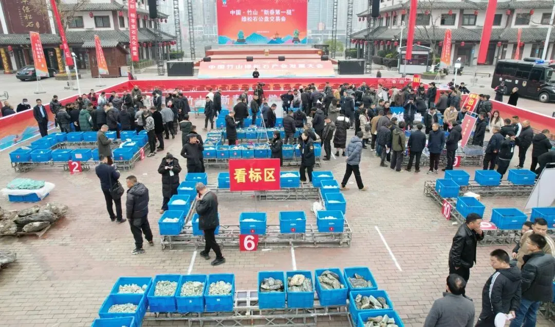 本次公盘交易会由竹山县矿产资源管护发展中心所属的竹山县松石公盘贸易中心操盘,县公证处全程监督,参与公证。公盘交易流程按照标的物设置、标的物预展、公盘交易、标的物提取托管、流拍标的物再售、资金管理结算的顺序依次进行。活动时间为12月27日至28日,每天上午9点至下午2点现场看标,下午2点30分至5点30分对标的物进行竞拍,价高者中标。公盘交易会标的物来源为县内依法取得采矿权的开采企业提供的绿松石原矿毛料和其他商家提供的县外、省外、国外绿松石毛料。标的物总重量约20吨,拟设置300份标的物,估价5000万元以上。