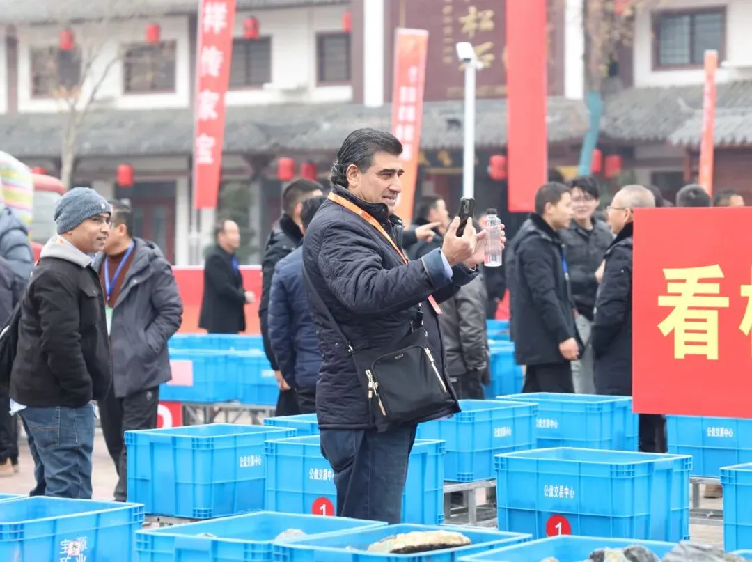 在看标现场,来自世界各地的宝石从业者、松石收藏家以及绿松石爱好者们汇聚一堂,仔细审视每一件绿松石展品,或轻声讨论,或驻足欣赏,力求在竞标中能够慧眼识珠,挑选到最具价值与投资潜力的宝贝。