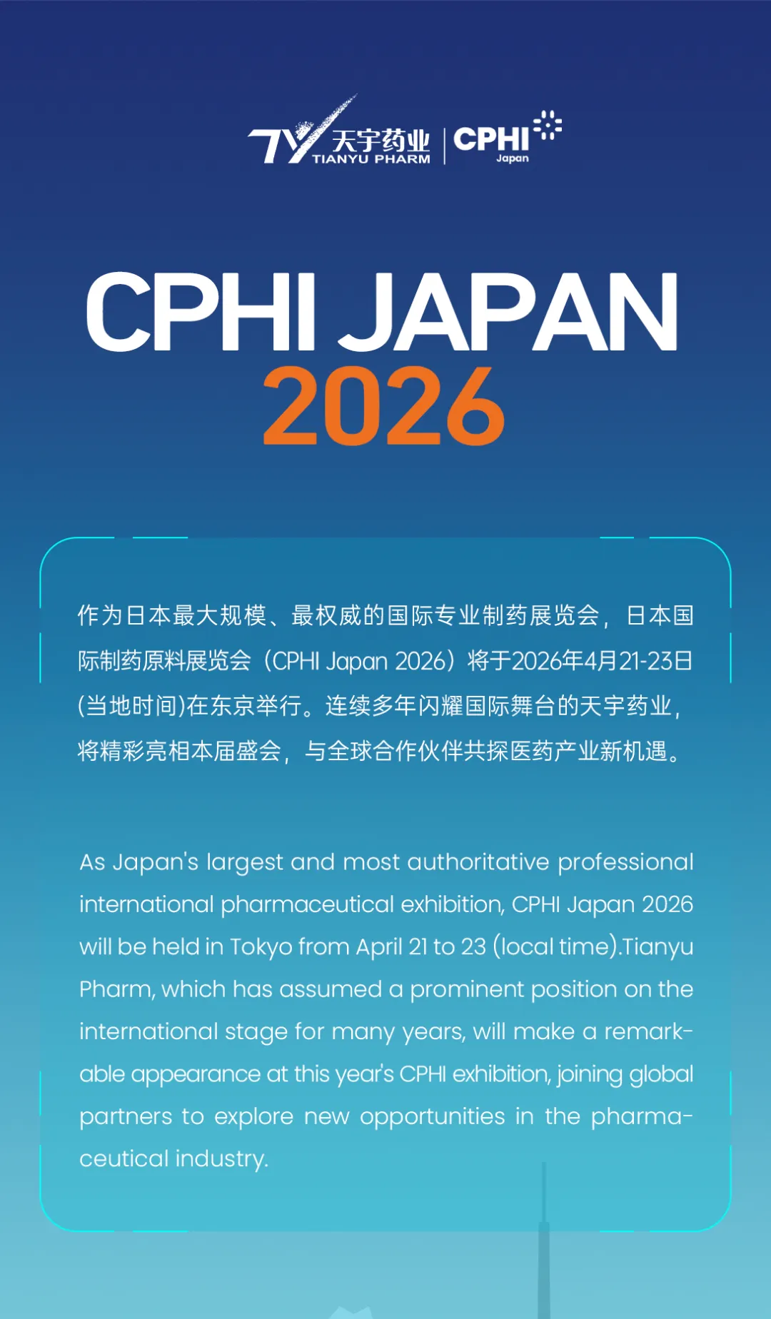 展会预告 | 天宇药业邀您共赴CPHI Japan 2026!