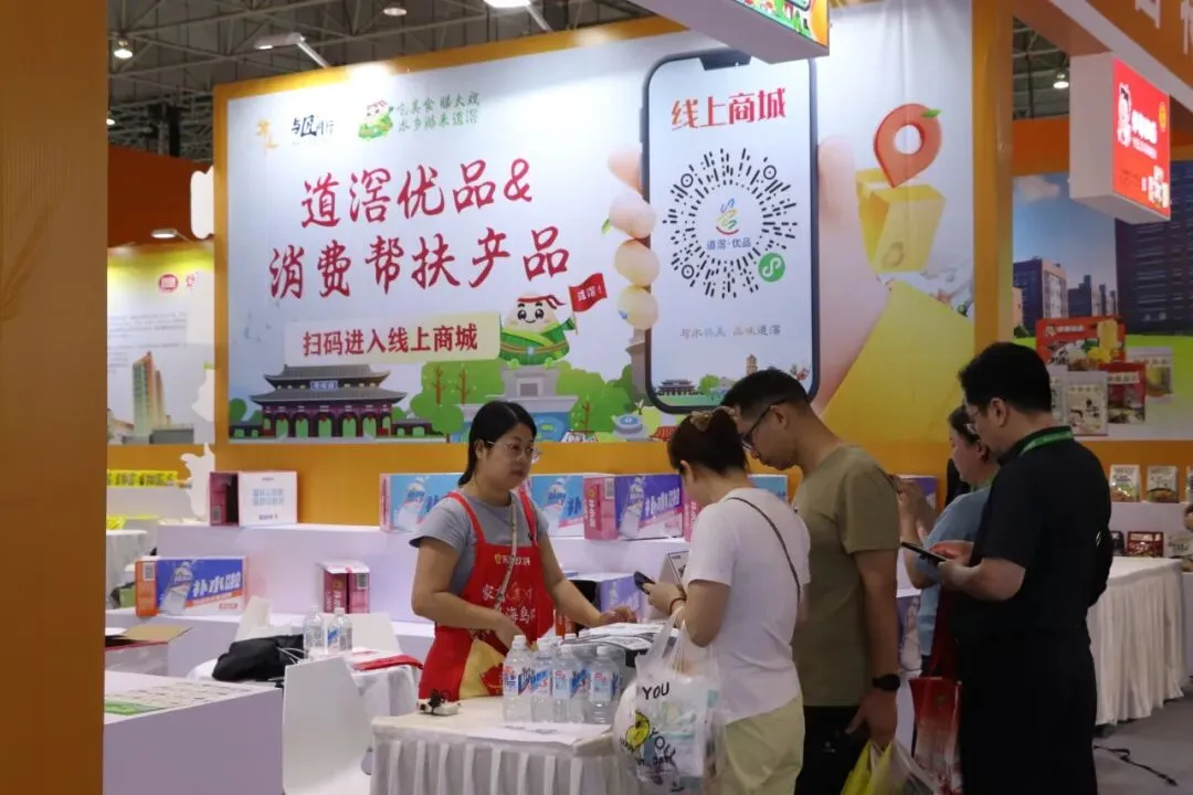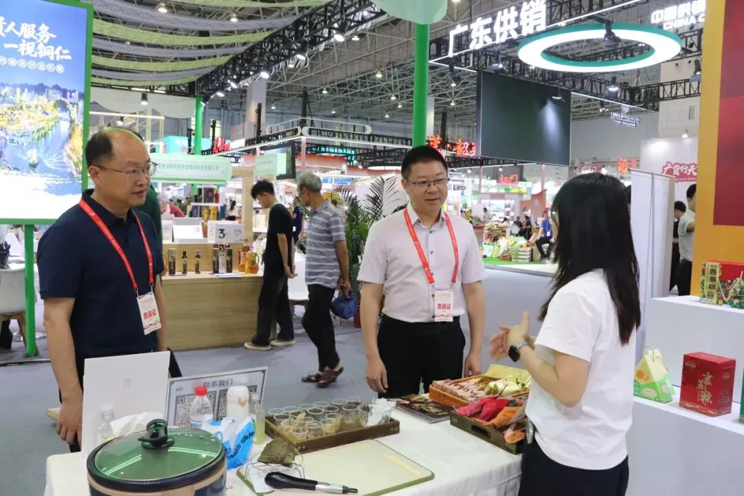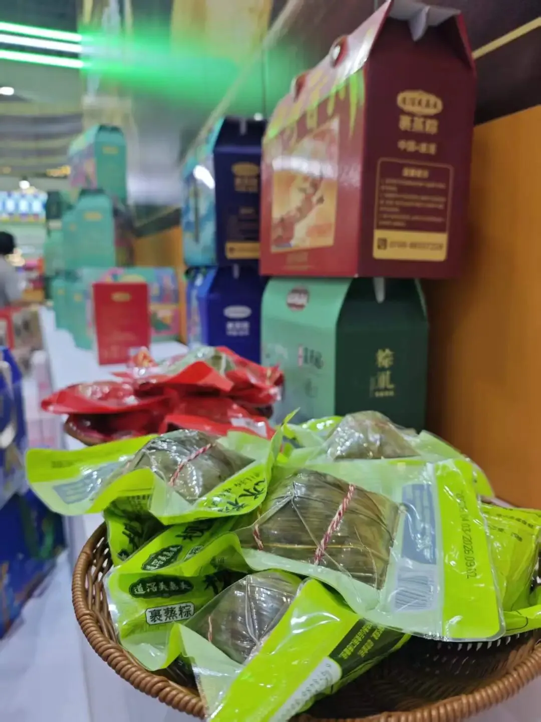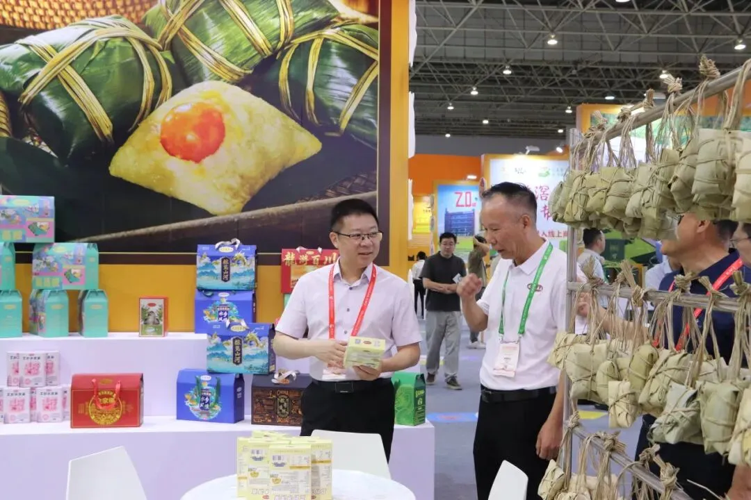 此外,其他参展企业也各具亮点:蜂乜带来了各式蜂蜜饮品,主打健康养生概念;御海食品展出了道滘粽、蛋卷、礼饼等传统小吃,传递地道水乡风味;云品家则带来了一系列助农特色食品等;佳佳美作为道滘传统美食的代表,现场呈现了道滘裹蒸粽等非遗美食,让客商近距离感受水乡传统风味。