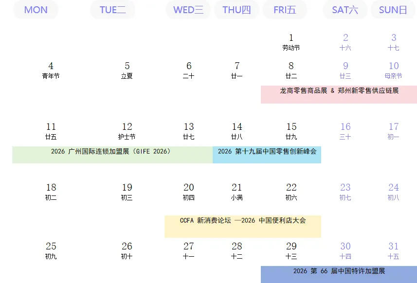 5 月零售 / 加盟展会黄金档来了!覆盖选品、供应链、加盟、创新峰会,一站式对接资源,抢占行业先机!