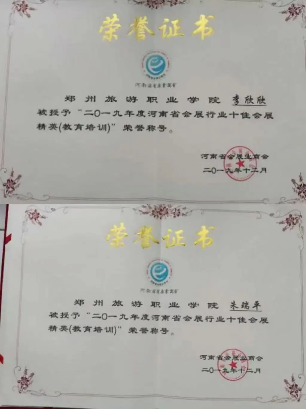 会展专业朱瑞平、李欣欣老师获得“2019年十佳会展精英”荣誉称号