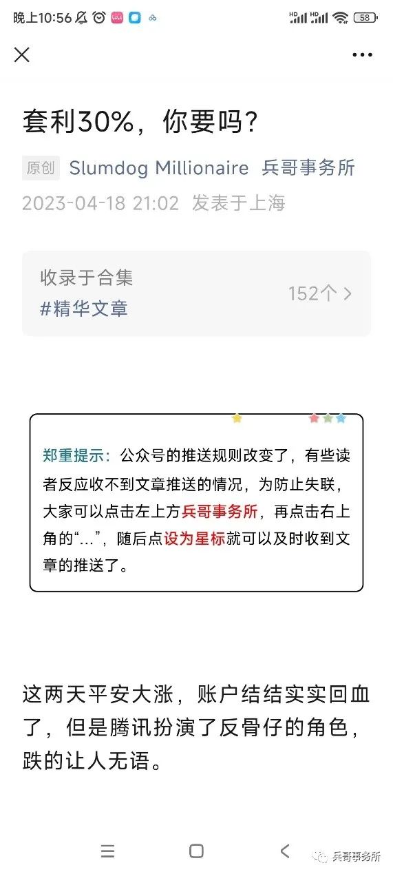 郑重提示:公众号的推送规则改变了,有些读者反应收不到文章推送的情况,为防止失联,大家可以点击左上方兵哥事务所,再点击右上角的“...”,随后点设为星标就可以及时收到文章的推送了。