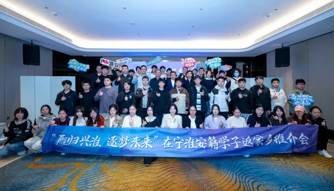 为深入实施新时代 “人才强市” 战略,增强淮安青年的主人翁意识和乡情使命感,深入推进 “雁归” 工程,由市委人才办、市人社局、团市委主办的“雁归兴淮 逐梦未来” 在宁淮安籍学子返家乡推介会在南京顺利举办。本次推介会吸引了南京大学、东南大学、南京林业大学、南京工业大学等十余所高校在宁淮安籍学子参加,大家齐聚一堂、共话乡情、共商发展、共筑未来。