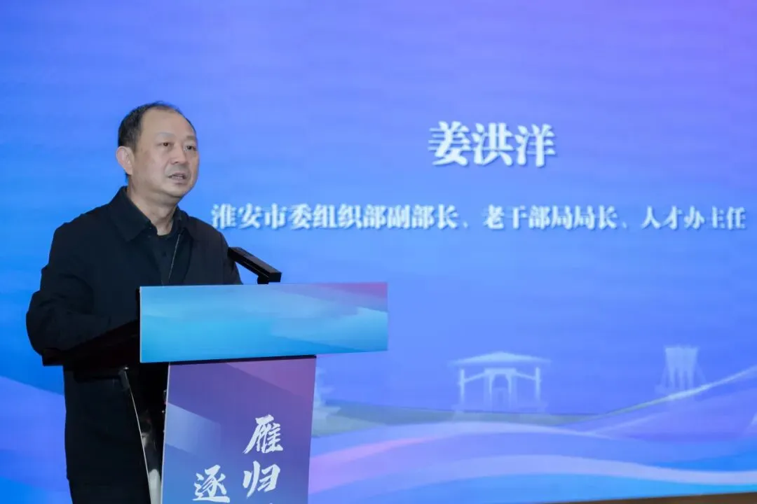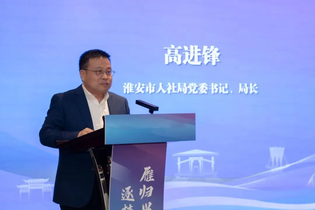 高进锋作人才政策宣介,他表示淮安聚焦安居保障、就业创业、服务生态三大维度,全面升级人才扶持政策,为返乡学子提供全周期、全方位暖心服务,同时希望广大淮安籍学子抢抓机遇、返乡发展,在家乡创新创业、成就人生价值。