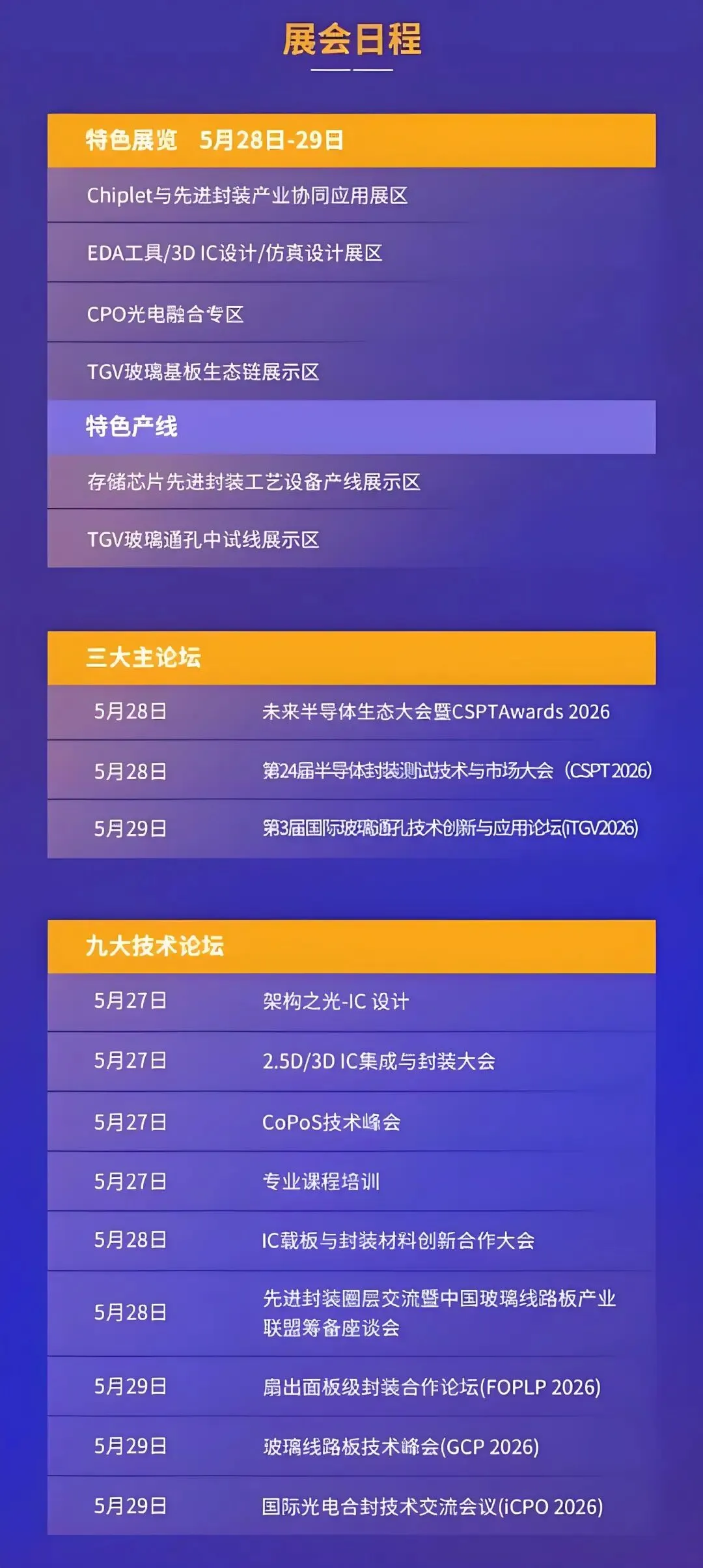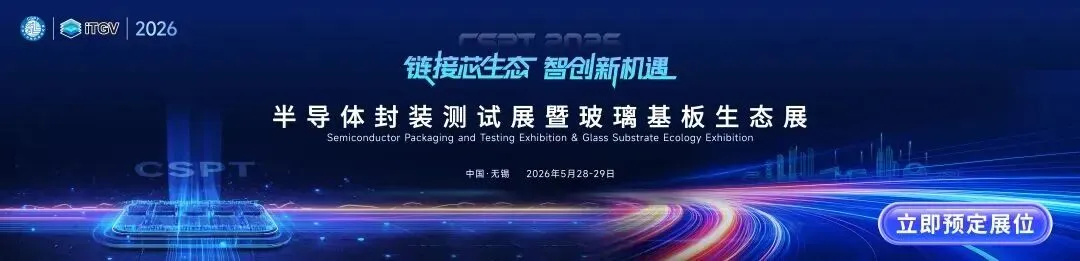 5月28-29日,无锡国际会议中心,CSPT 2026邀您共赴这场全产业链的合作盛宴。在这里,无需辗转奔波,即可链接半导体封装全链条核心资源。无需多方对接,即可找到精准合作伙伴。无需盲目探索,即可把握行业前沿趋势与发展机遇。让我们以技术为媒、以合作赋能,携手推动中国半导体封装产业高质量发展,共绘产业升级新蓝图!
