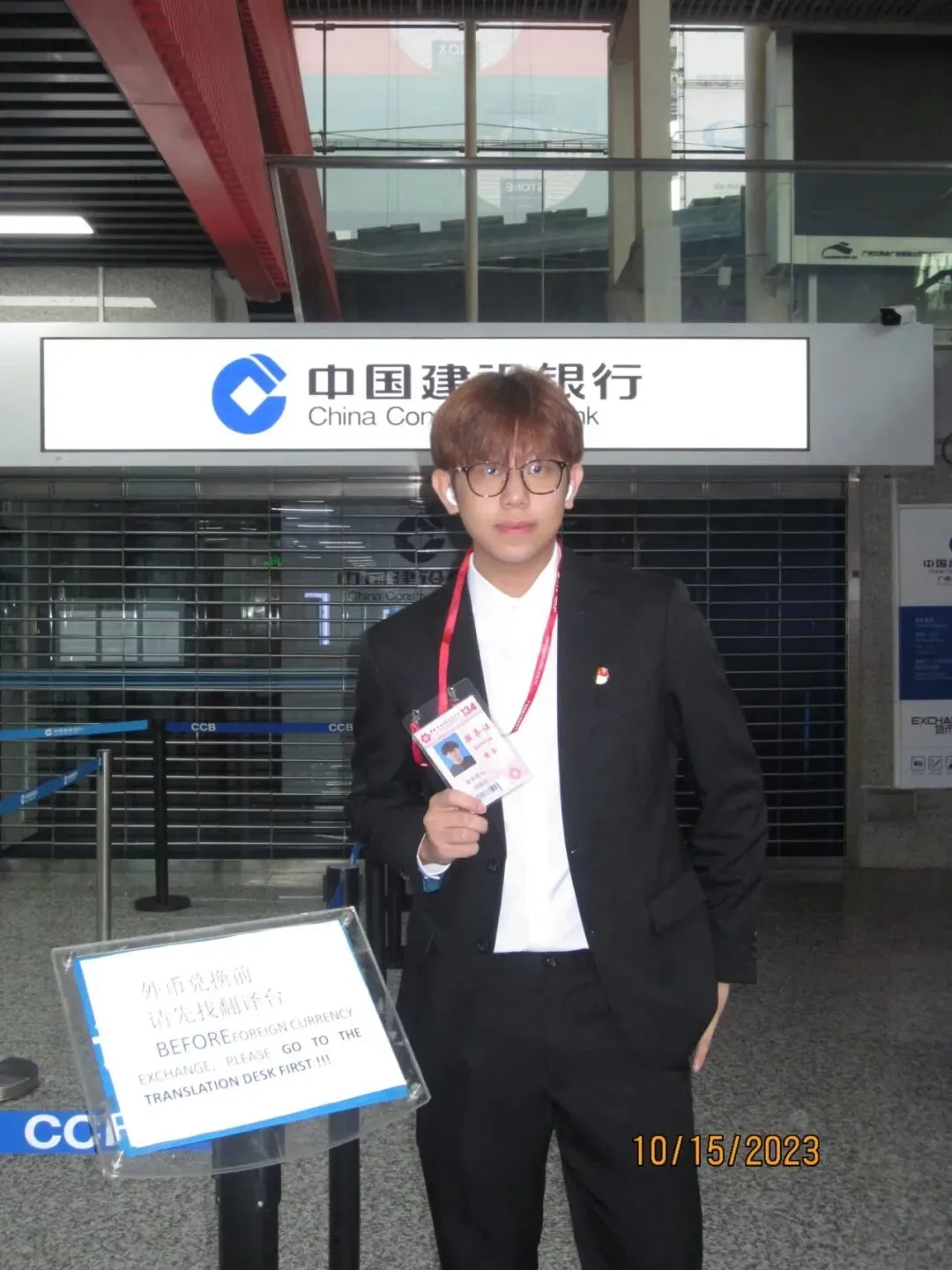 这次别样的实习经历,让吴姗蔚深刻地感受到了坚定理想信念的重要性。作为学生预备党员,她始终坚定理想信念,保持热情;作为建行的翻译实习生,她凭借自己的专业素质,勇往直前,在广交会上大放异彩。她与外国客商积极沟通交流;帮助他们了解中国市场的最新动态;协助他们进行外币兑换。在此过程中,她不仅提高了个人英语口语水平,学习到了许多相关的商业知识,提高了自己的临场应变能力,还在和外宾的沟通交流中了解了不同国家和地区的文化差异与商业习惯。