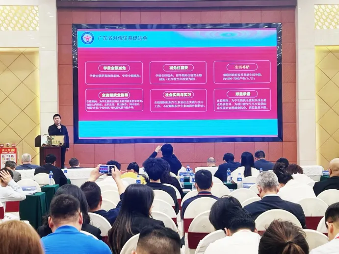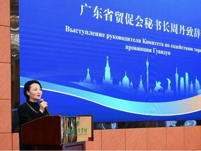 广东省贸促会秘书长周丹女士在致辞中对本次经贸采购对接暨国际产教融合创新发展中心教育项目产品发布会的召开表示热烈祝贺,向远道而来的俄罗斯友人及各界支持粤俄经贸、教育合作的朋友致以感谢。她指出,此次对接会是粤俄双向奔赴的务实之举,各环节直击企业出海痛点。面对复杂的全球经济形势,粤俄经贸互补性强、合作空间广阔,广东省贸促会也将持续整合资源,提供多元化商事法律服务,当好企业出海的“护航员”,为出海企业做好人才培养,助力粤企深耕俄罗斯市场。