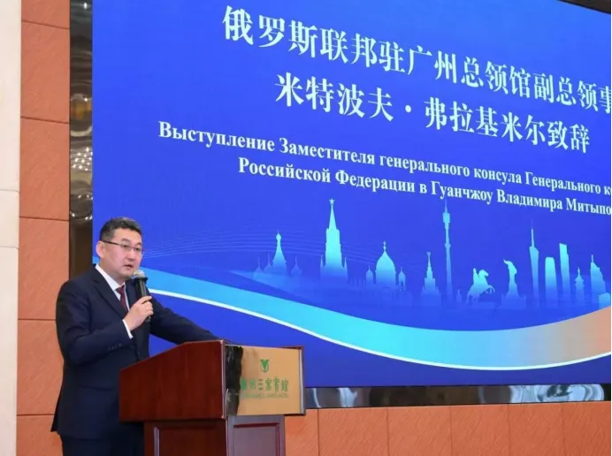 俄罗斯驻广州总领事馆副总领事米特波夫·弗拉基米尔先生表示,当前中俄关系达到历史最高水平,今年将迎来《中俄睦邻友好合作条约》签署25周年等重要节点。广东与俄罗斯贸易合作潜力巨大,广东省对俄贸易促进会成立两年多来,为粤俄企业、高校对接搭建了重要桥梁。总领馆将全力推动双方建立互利共赢的合作联系,祝愿本次会议取得丰硕成果。