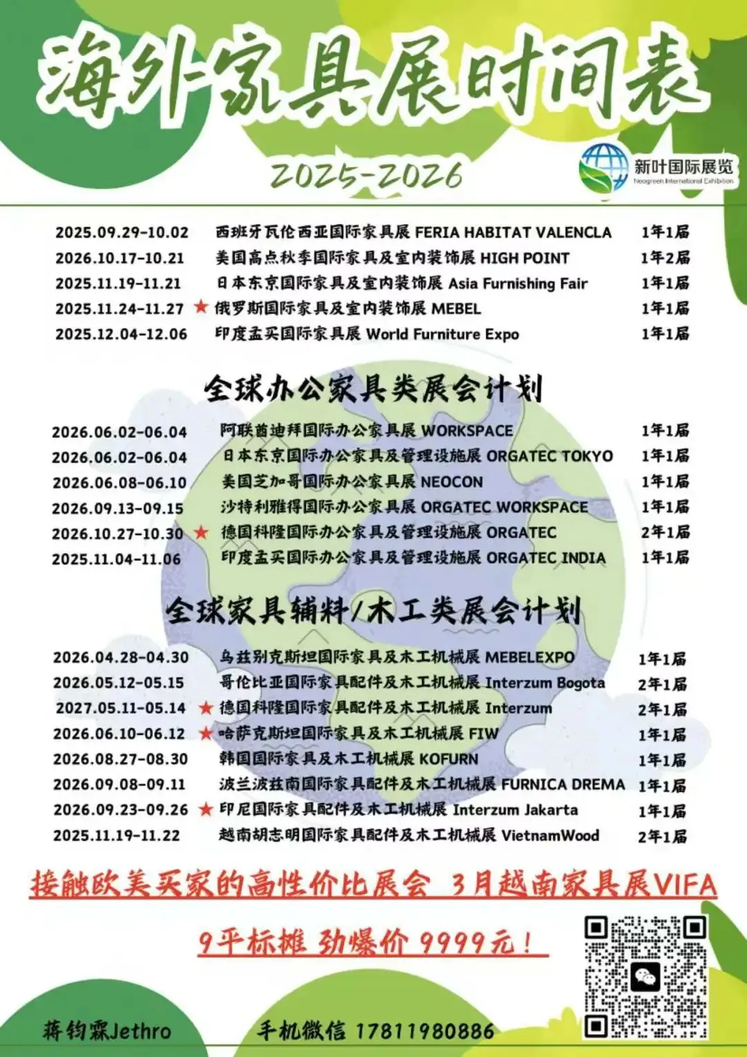 行业洞察与商贸赋能凭借多年积累,我们持续为客户提供家具市场的趋势分析,通过主办方等渠道,优先为合作客户匹配高潜力买家资源,提升参展投资回报率。