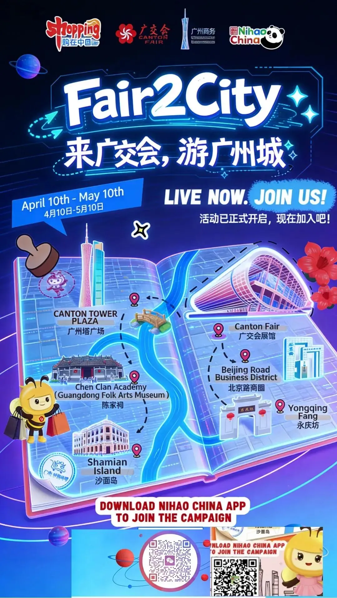 副码(可选):活动页直达码(若APP已下载,扫码直接进入“Fair2City 来广交会,游广州城”活动页,标注“已下APP?扫码直接打卡”)