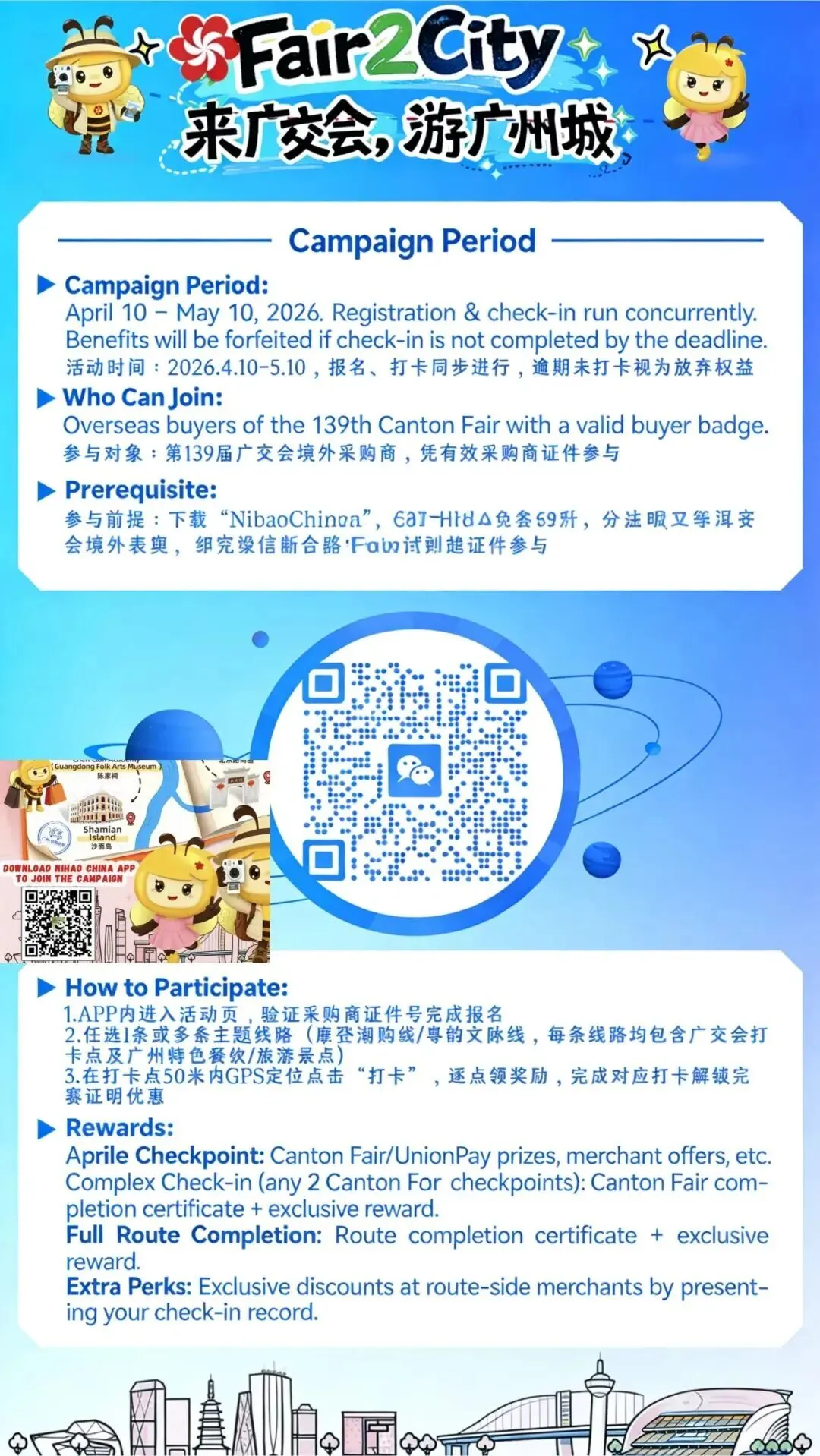 ✅ 即时奖:单点打卡领银联奖品/商家折扣,完成线路得广交会专属完赛证明;