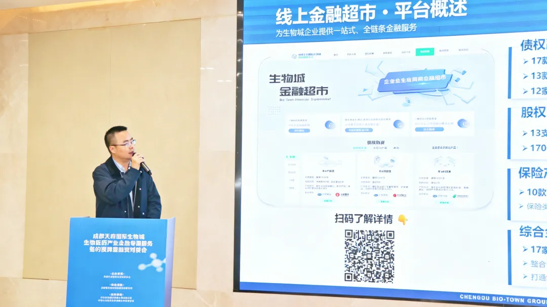 据悉,该线上金融超市整合了银行、基金、保险、券商等多元金融资源,创新构建“AI企业画像”与风险评估模型,能够根据企业规模、研发方向、资金需求等精准生成专属金融解决方案,实现“需求一键提交、方案智能生成、专人全程跟进”的闭环服务体验,打破银企信息壁垒,让企业融资像“网购”一样便捷高效。这一模式借鉴了国内先进地区金融超市的成功经验,进一步完善了天府国际生物城的金融服务生态。