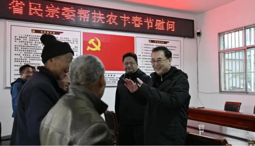 2月3日,新春佳节来临之际,省人大常委会机关党组书记、秘书长韩一兵带队赴丰收村调研乡村振兴工作,走访慰问当地群众和驻村干部。活动中,韩一兵秘书长代表省人大常委会机关向丰收村捐赠爱心款。与会领导还为重点监测户送上春节慰问金和爱心礼包。随后,韩一兵秘书长听取了省级乡村振兴帮扶团镇安县工作组及驻村工作队的工作汇报,勉励帮扶队伍积极统筹各方资源,凝聚帮扶工作合力,勤思善谋、精准发力,持续提升帮扶工作质效。