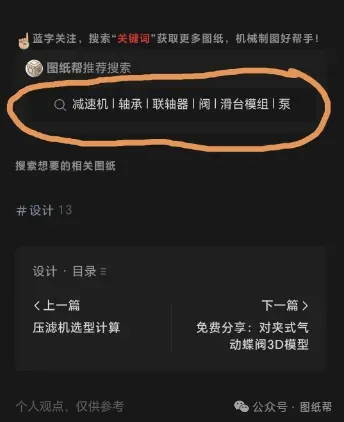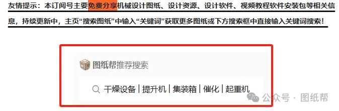 友情提示:本订阅号主要免费分享机械设计图纸、设计资源、设计软件、视频教程软件安装包等相关信息,持续更新中,主页“搜索图纸”中输入“图纸名称或相关词语” 获取更多图纸请在下方搜索框中直接输入关键词搜索!文末有下载链接!每天不定时更新新图纸!仅供参考!