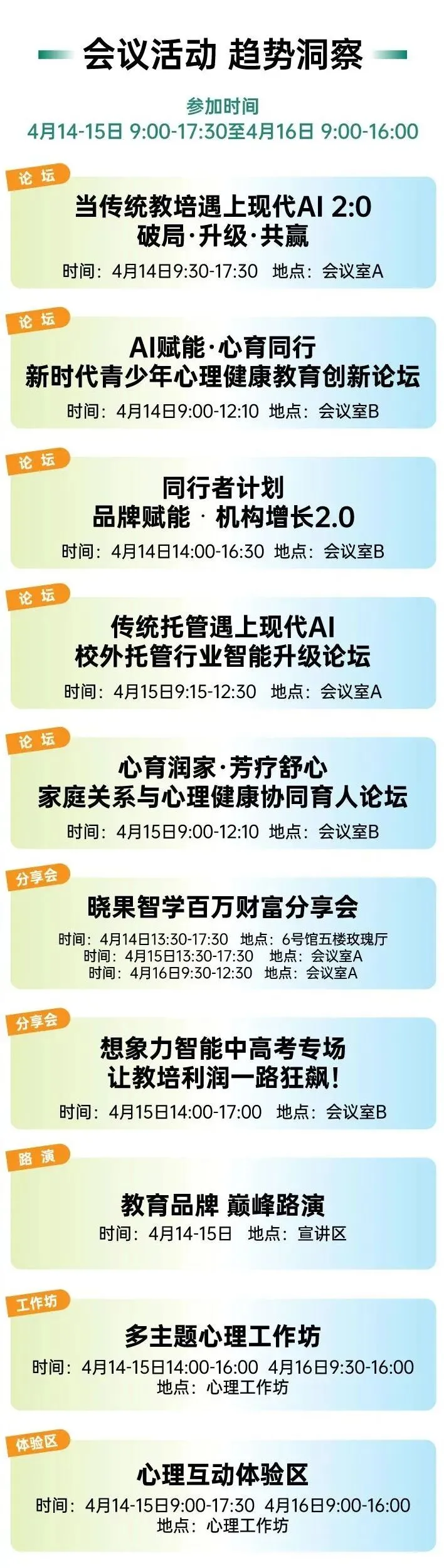 本次展会聚焦教育创新,设置多场高价值论坛、分享会、路演及体验区,亮点满满