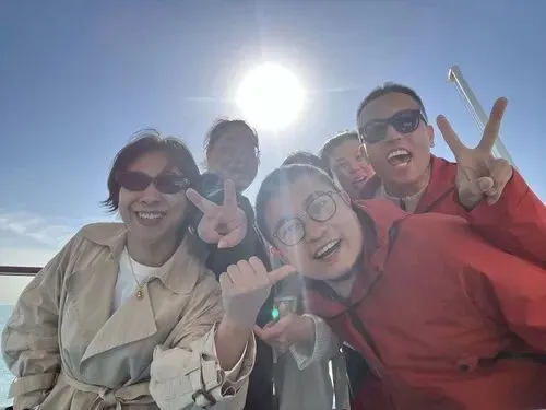 岸上同游:在韩国济州岛,伙伴们一同攀登城山日出峰,漫步涉地可支,在异国风光中加深了彼此的友谊。