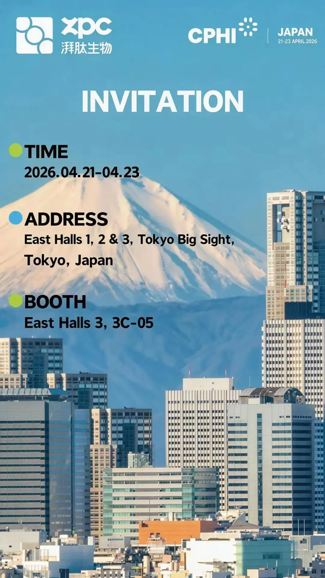 CPHI Japan 2026将于2026年4月21-23日在日本·东京举行。本次展会将吸引70+个国家及地区,800+参展商,35000+访客观众。日本是亚洲先进药物研发的引擎,也是全球创新、质量和监管卓越的领导者。作为世界第三大医药市场,日本拥有突破性的研发成果、高标准的生产体系以及无可比拟的医疗保健信誉。