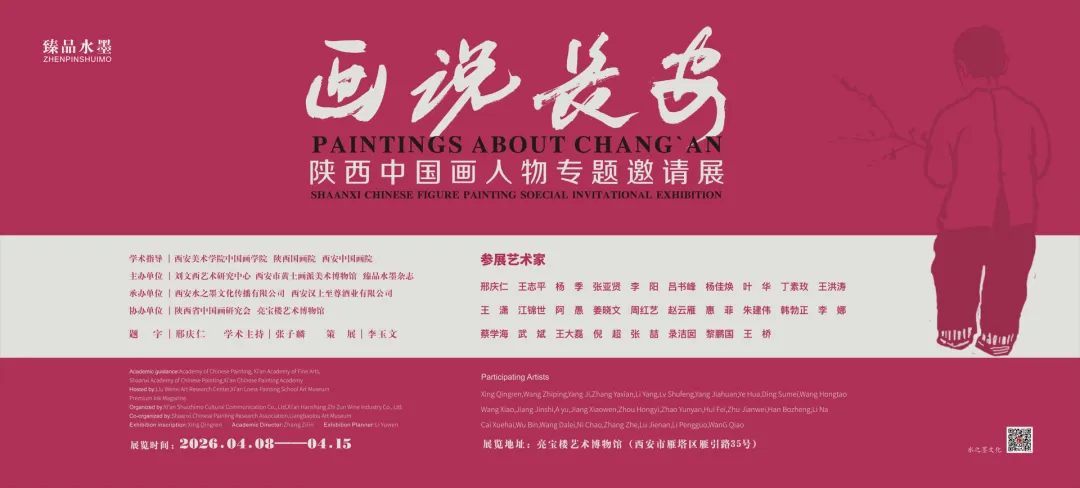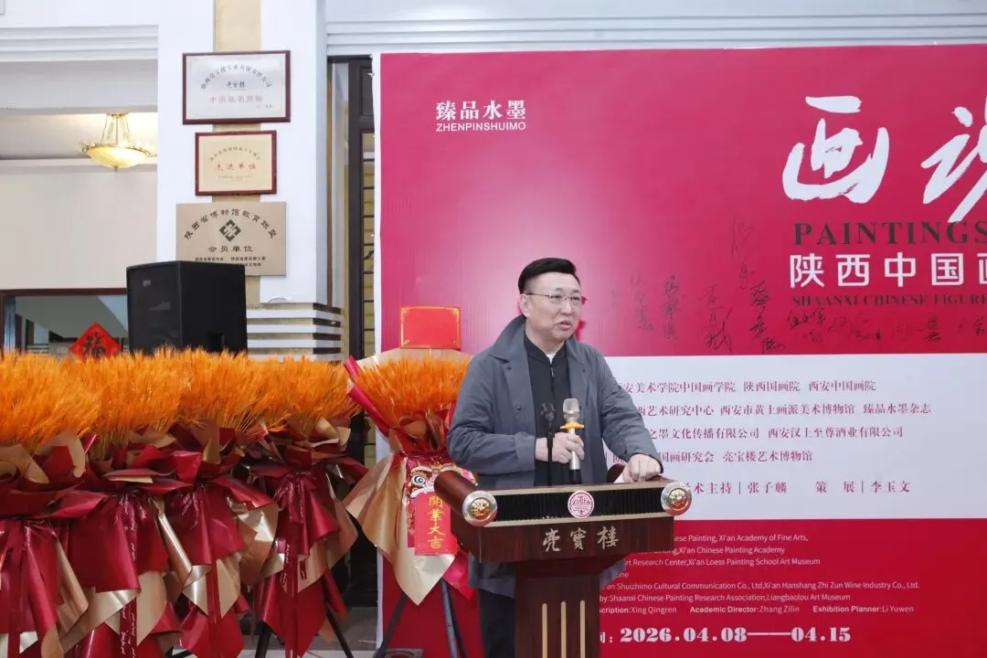 2026年4月8日下午,由刘文西艺术研究中心、西安市黄土画派美术博物馆、臻品水墨杂志主办,西安水之墨文化传播有限公司、西安汉上至尊酒业有限公司承办的"画说长安——陕西中国画人物专题邀请展"在亮宝楼隆重开幕。