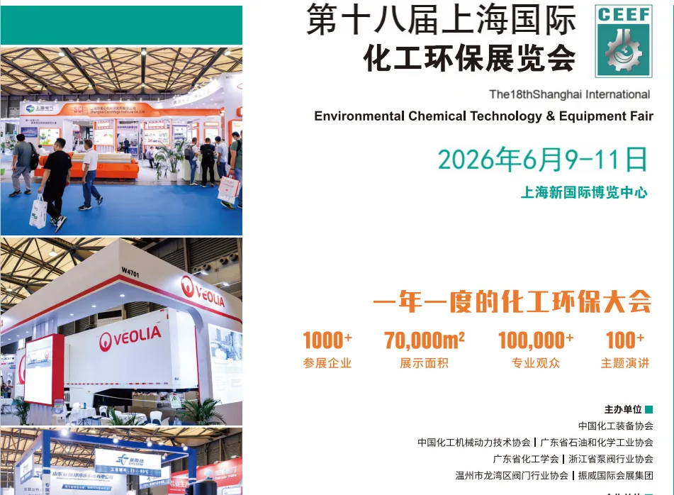 第十八届上海国际化工环保展将于2026年6月9日-11日在上海新国际博览中心举行,预计展出面积达7万平米,1000+家展商。展会自启动便热度不断,目前已有三废治理、石油石化、氯碱、天然气、制药、精细化工等行业近万名专业观众报名参观。