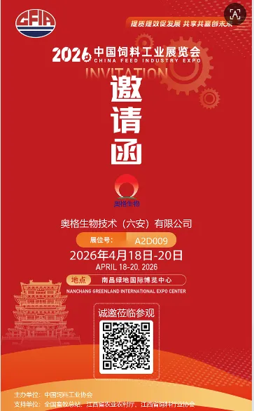 2026中国饲料工业展览会将于2026年4月18-20日在南昌绿地国际博览中心盛大举行。 奥格生物(位于A2馆A2D009)诚挚邀您莅临展位交流指导,共探饲料行业创新与可持续发展新路径。作为饲料添加剂领域的深耕者,奥格生物始终聚焦“精准营养、绿色替抗、低碳减排”核心方向。本次展会,我们将全新推出“奥格-理想微量元素模型”,现场展示技术成果在降本增效、肠道健康及环保养殖中的突破性应用。