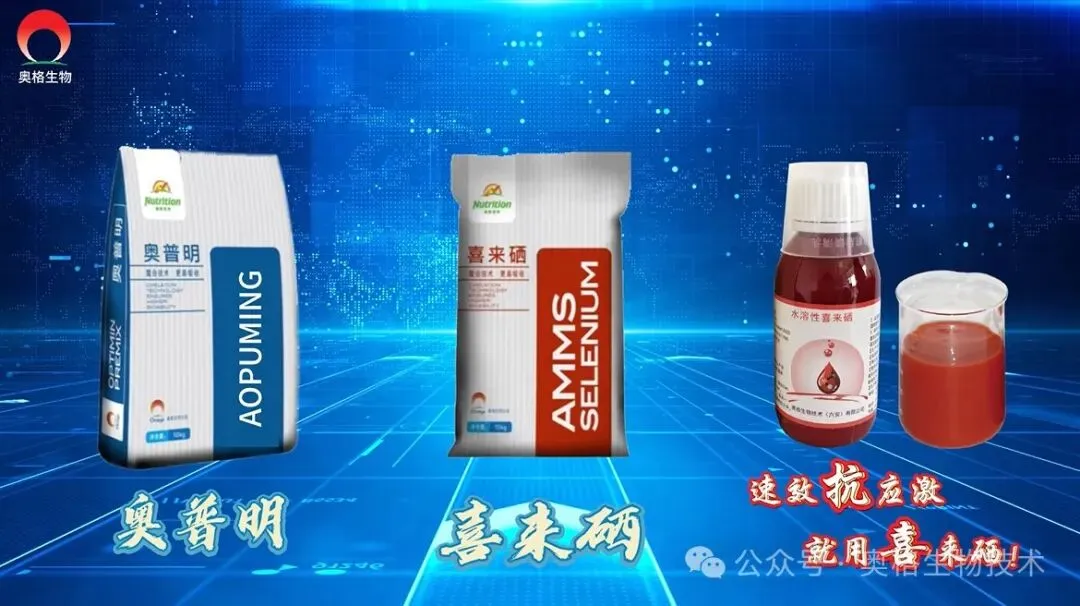 奥格生物主要产品有:奥普明系列产品(蛋白锌、蛋白锰、蛋白铜、蛋白铁及其复合包)、壳美强、喜来硒(粉末和液体)、脱霉素(脱霉素、脱Ⅲ、解脱)、新型痢乐宝等。奥格生物重点推出的速效抗应激产品——水溶性喜来硒,具有安全性好,高度水溶,利用率高,抗应激快的特点。