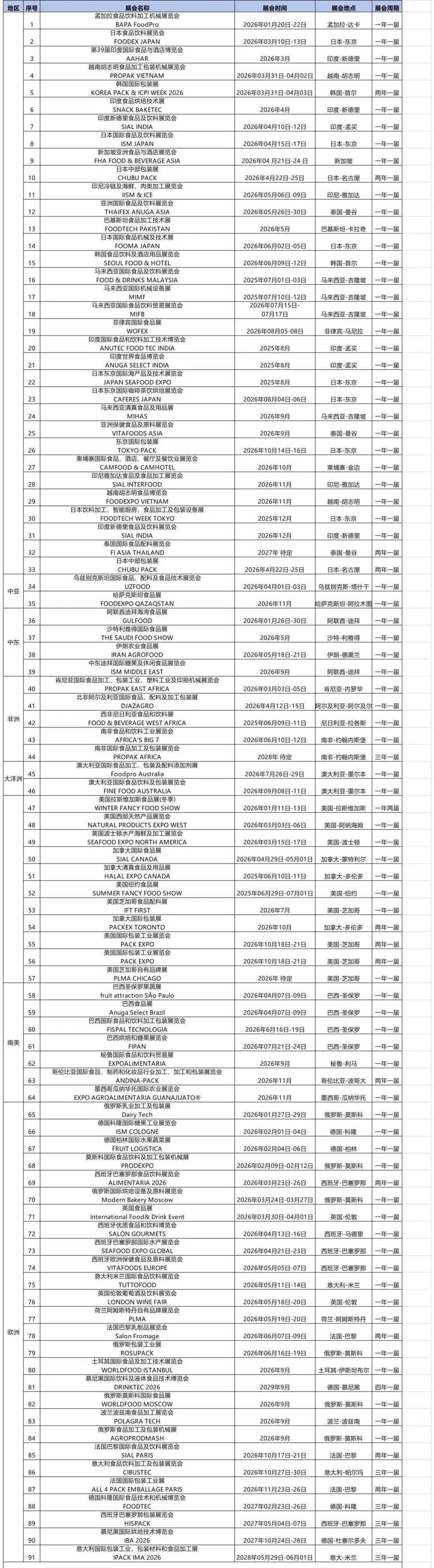 2026年全球食品展会计划表