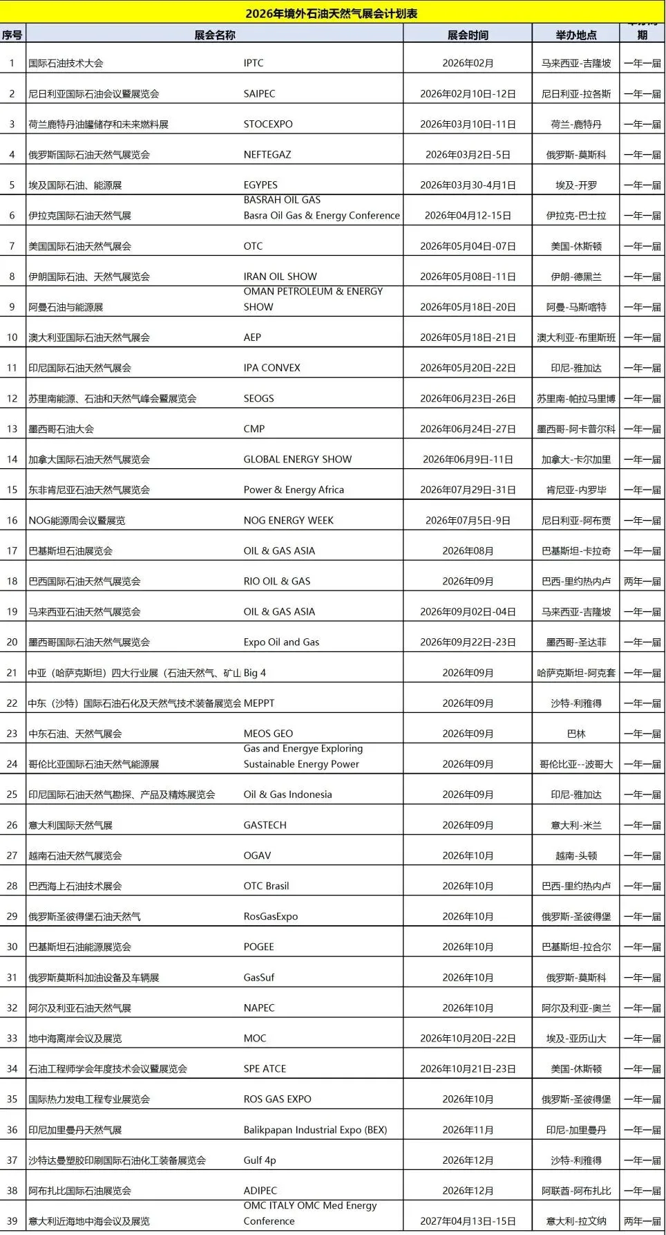 中国参与情况:中国企业约20–30家参展,主要为油服、设备、管材、工程公司