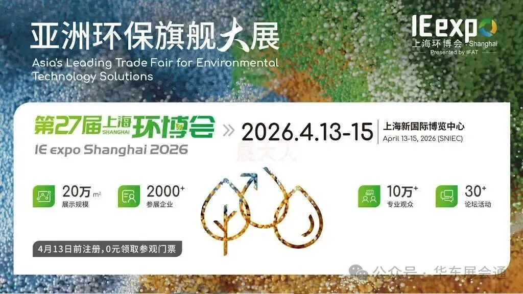 作为仅次于母展IFAT展的全球第二大环保展,第27届上海国际环博会IEexpo Shanghai2026将于4月13-15日在上海新国际博览中心盛大举办!