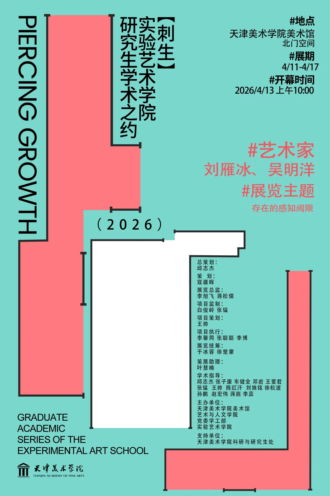 「刺⽣——实验艺术学院研究⽣学术之约」是由实验艺术学院研究⽣发起的学术性展览。参展者基于各⾃的研究⽅向完成展览的策划与实施。展览集中呈现学⽣在观念建构、媒介实验与策展实践中的阶段性成果,体现其在当代艺术中的思考与探索。