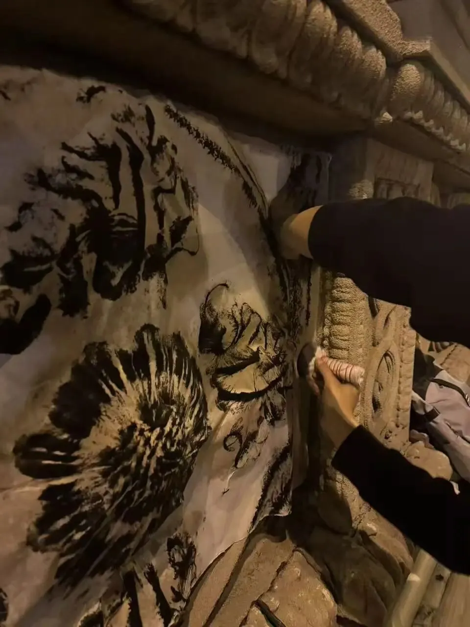 作品简介: 以“拓印”作为核心媒介,通过对天津不同时代建筑形态与具有历史记忆的城市符号进行采集与转译,将城市的物质遗存转化为可被观看与感知的视觉文本 。拓印不仅是一种复制技术,更是一种“接触式的记忆提取 ”,它保留了时间作用于物质表面的痕迹,使历史不再以叙述的方式呈现,而以触觉性的视觉语言被重新激活。