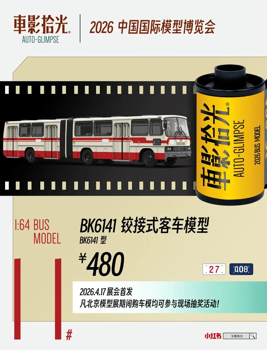 本次车影拾光联合北京公交合作开发了1:64比例高仿真BK6141模型,计划于2026年4月北京模型展期间首发上市。在北京公交的支持下我们对北京公交博物馆馆藏的一台BK6141车辆进行了3D扫描数字建模,使得外观内饰精准还原了车辆的原貌。模型车身及底盘采用锌合金铸造,内饰独立座椅设计,地板、天花板均做了分色处理。高清移印工艺使得车身上的各种细节都得以缩小复刻。BK6141是九十年代北京的主力车型,相信我们的模型推出会勾起很多老北京人的回忆。