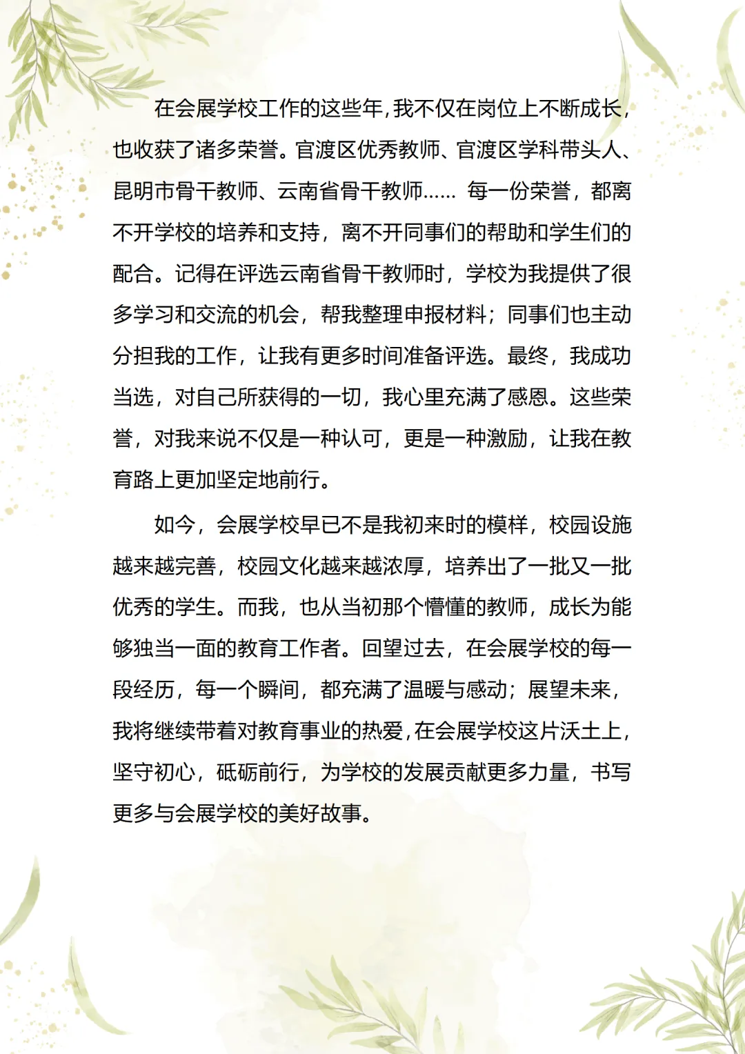 回望在会展的岁月,三个人的故事,三种不同的奔赴,却在同一个校园里交织成温暖的画卷。潘老师用多岗担当诠释了成长的分量,王老师以日夜耕耘守住了教育的温度,杨老师在科学小径上收藏了童真的星光。他们的故事告诉我们:教育的美好,不在于惊天动地,而在于那些日复一日的陪伴、那些不经意的感动、那些彼此照亮的瞬间。会展的岁月,正因为有了这样一群人,才如此动人;而他们,也将在未来的日子里,继续带着这份初心,书写更多关于爱与成长的故事。