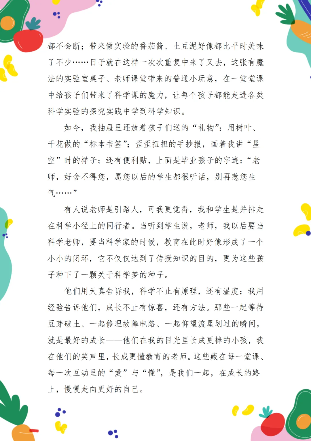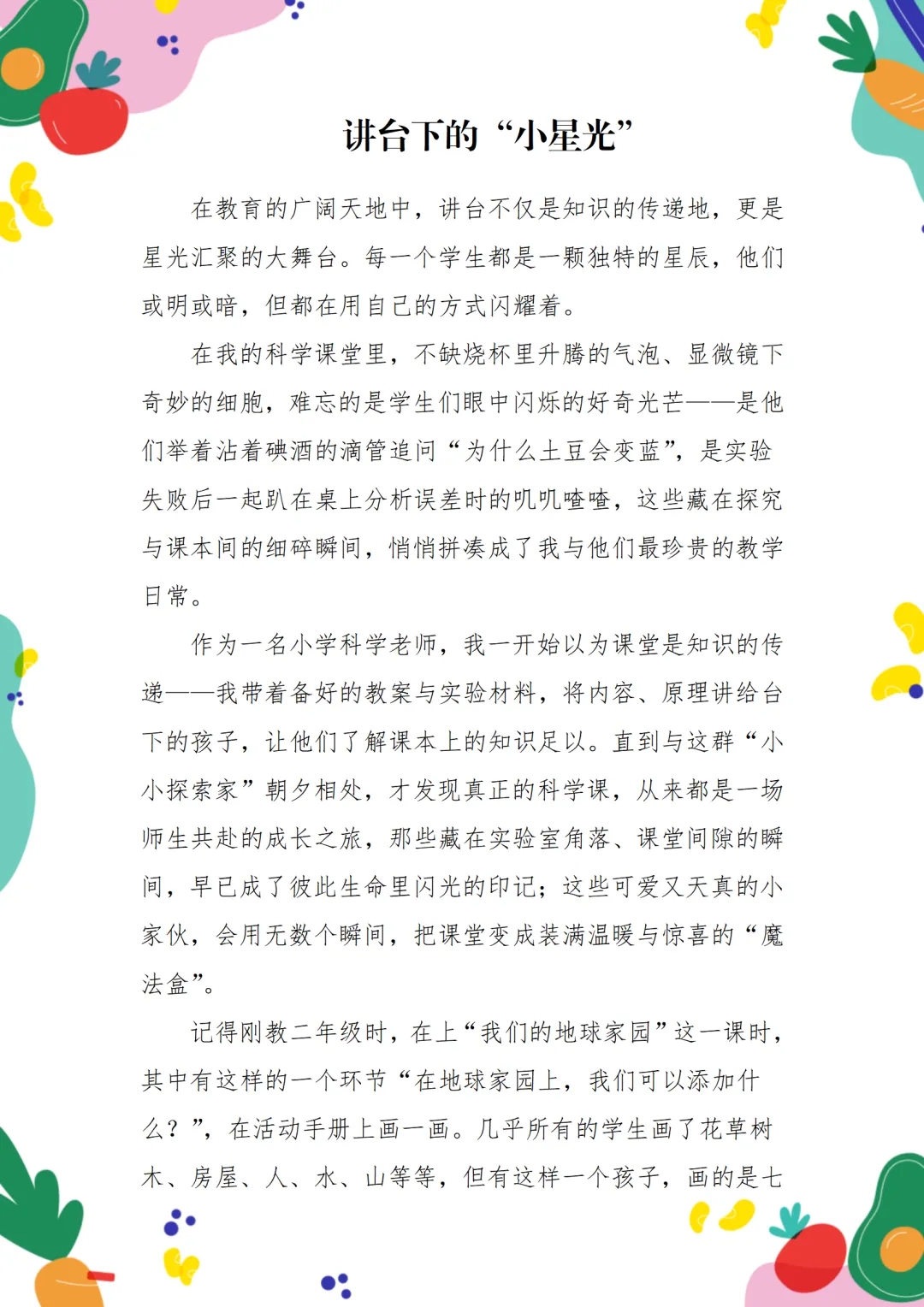 细细品味这三位老师的教育旅程,你会发现一个动人的交集:潘肖娜老师在多岗轮转中始终守护着初心,杨彩霞老师在科学探究里等到了成长的回响,王俊涛老师在日复一日的耕耘中点亮了坚持的力量。原来,教育从来不是单向的给予,而是一场光与光的相遇——我们在照亮孩子的同时,也被孩子深深照亮。