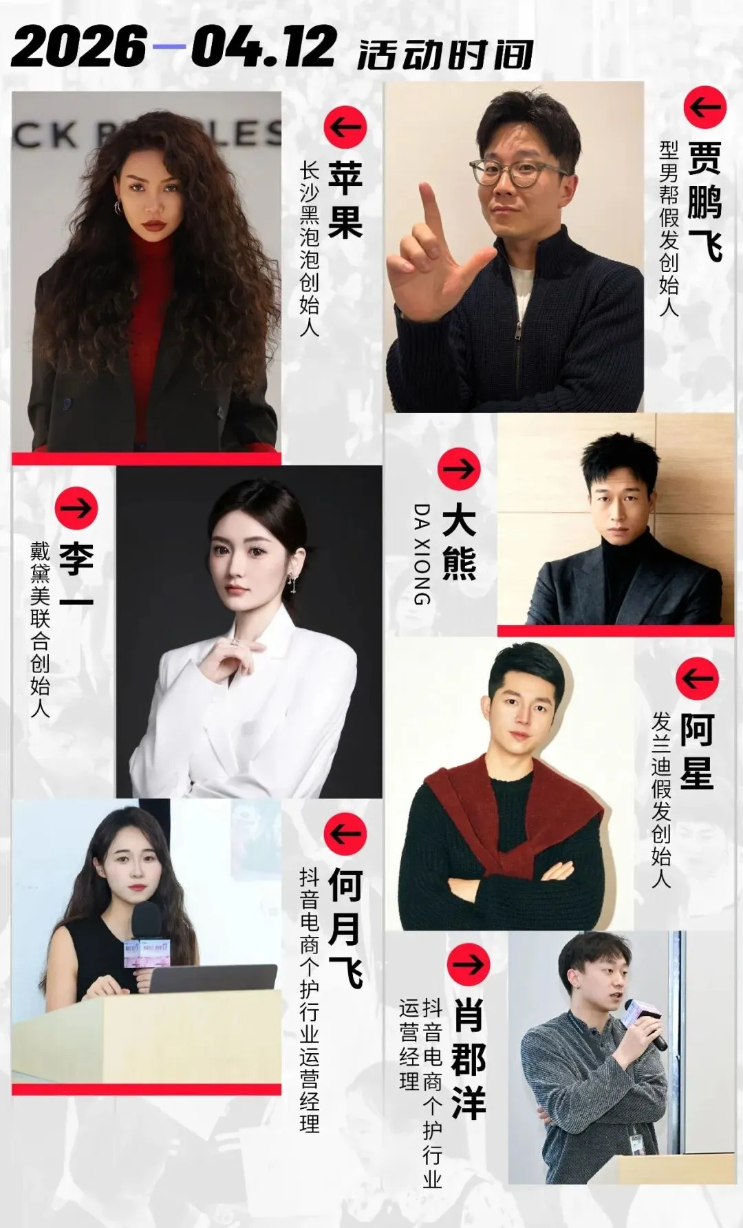 展会特邀抖音团队解读假发产业带内容电商增长新路径,汇聚戴黛美、发兰迪、型男帮、长沙黑泡泡等品牌创始人分享门店破局、数字化定制与接发全域增长实战经验,更有行业技术大咖亲授2026潮流接发技法与修剪哲学。