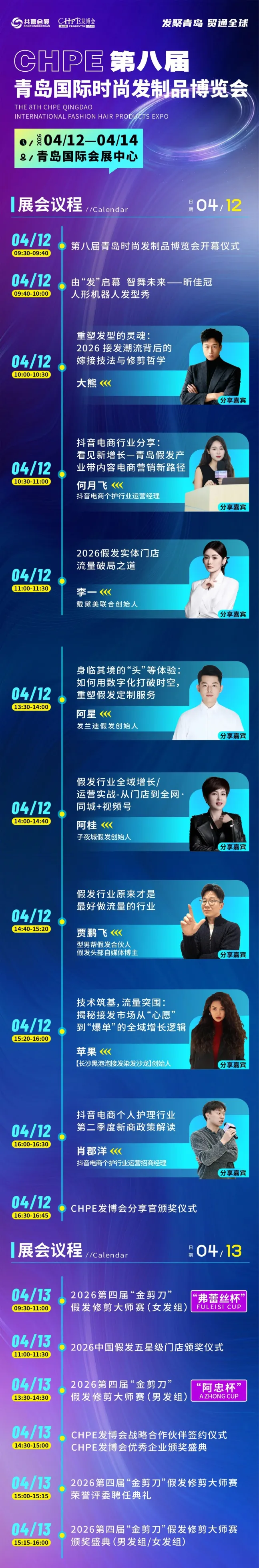 2026年4月12日-14日,第八届青岛国际时尚发制品博览会(青岛发博会),将在青岛国际会展中心正式启幕,今日距开幕仅剩1天。本文为您完整揭晓大会日程,助力发业同仁精准规划观展行程,不错过每一场干货分享与重磅活动。