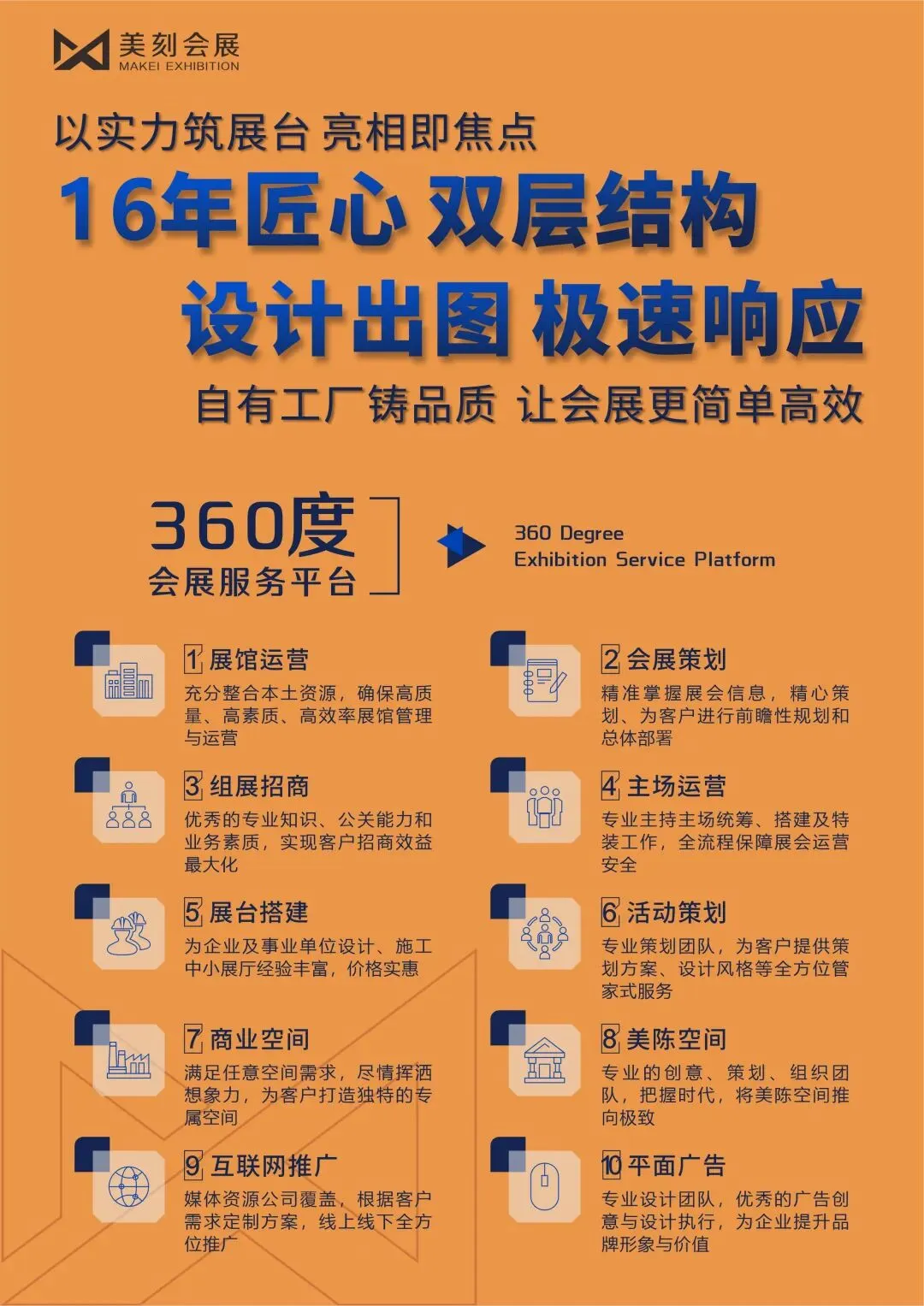 传统会展服务链条中,设计、制作、搭建、运营等环节往往由不同供应商承接,导致信息传递失真、责任界定模糊。美刻会展通过"设计→工厂模块预制→展馆现场搭建→展期运营、维护→撤展"的全流程服务模式,实现一站式"拎包参展"体验。