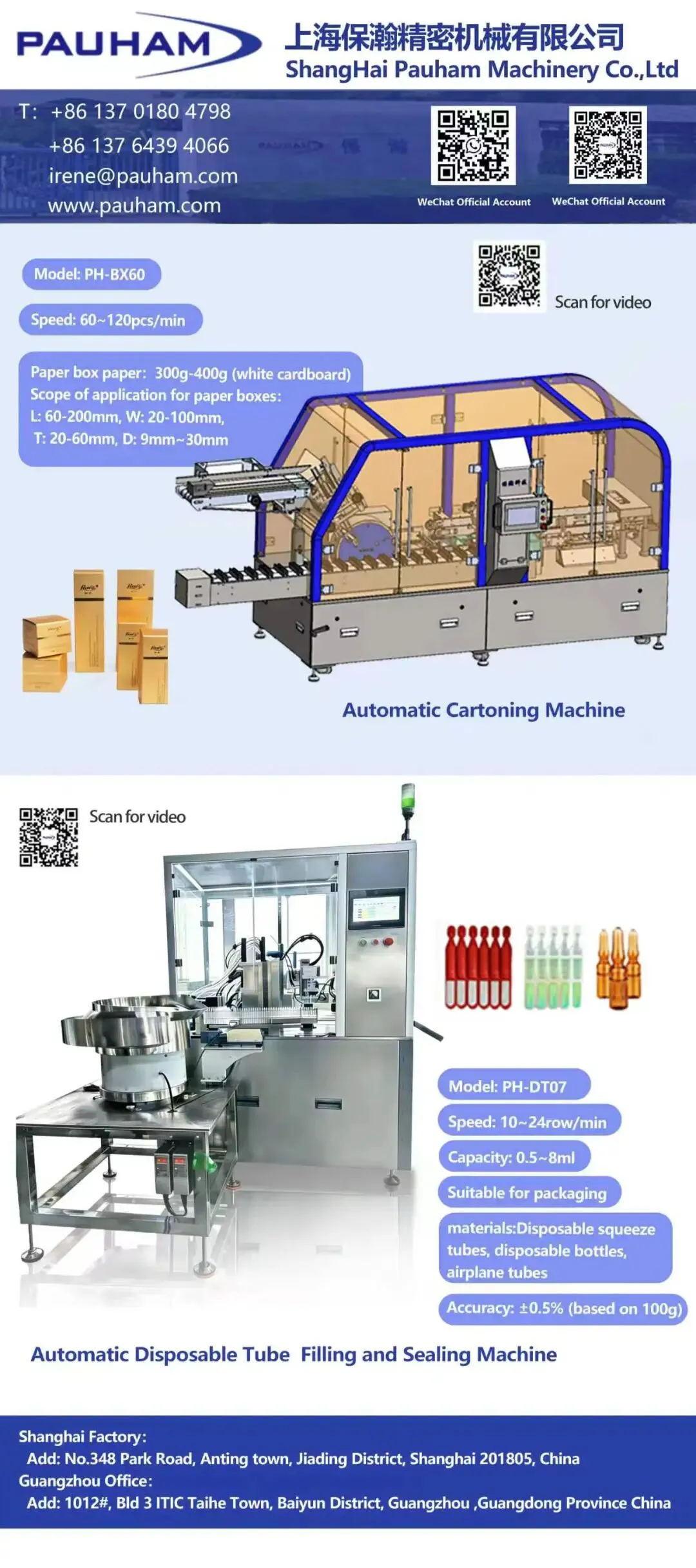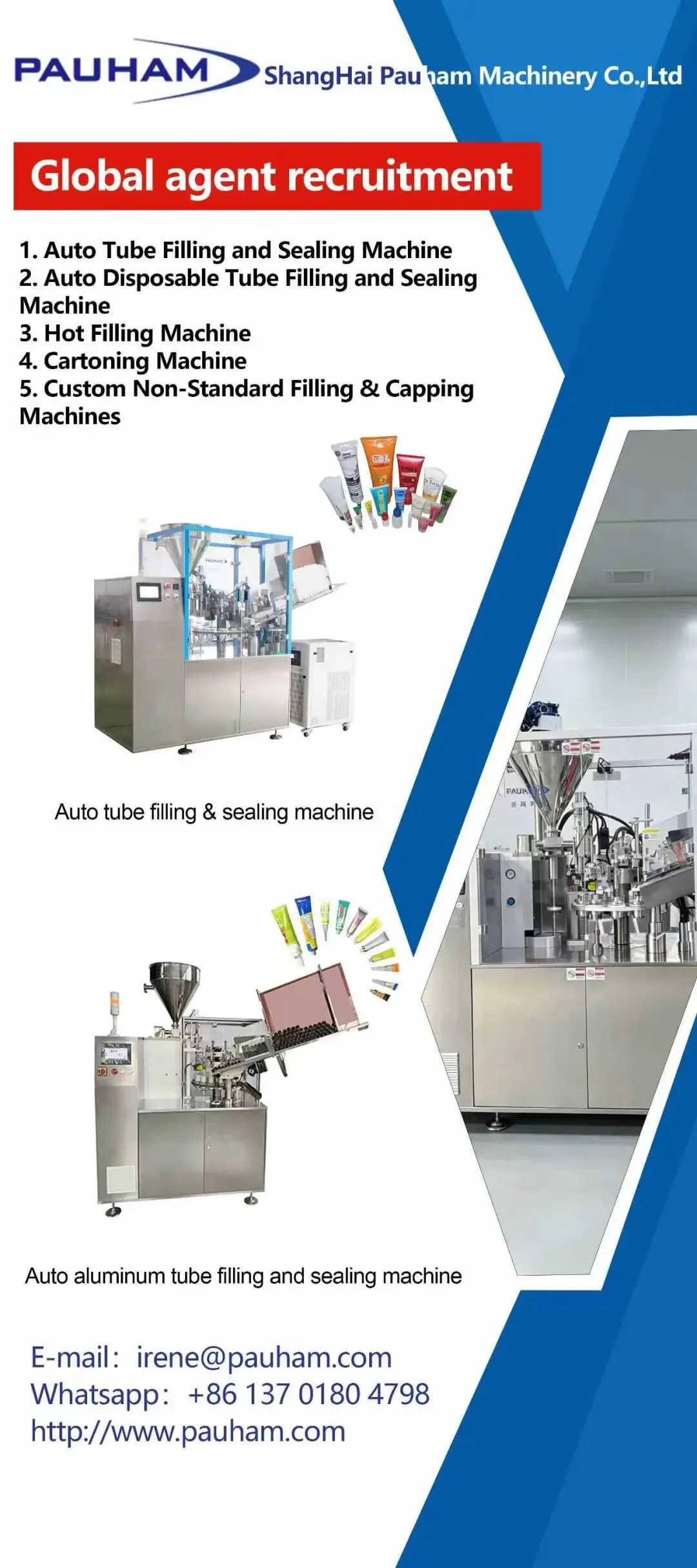 Main products: Automatic tube filling & sealing machines, bottle filling & capping machines, custom non-standard equipment, Automatic Disposable Tube Filling and Sealing Machine and Automatic Cartoning Machine