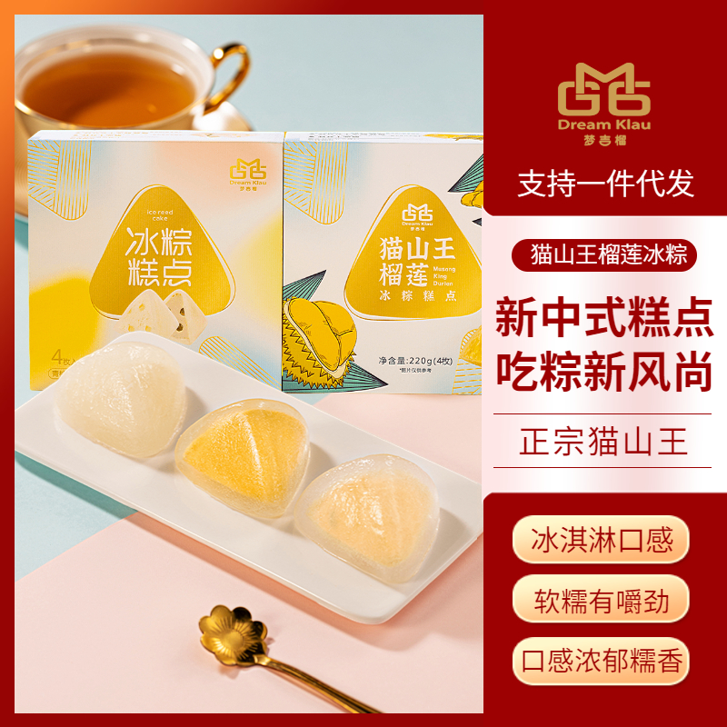 猫山王榴莲冰粽精美体验装/礼盒装:马来西亚榴莲果肉,安佳淡奶油,安佳芝士,水晶冰皮工艺, 正宗猫山王 冰淇淋口感 新中式糕点吃粽新风尚 冰皮Q弹,软糯有嚼劲 原材料榴莲:选用30年以上果树,自然成熟果,口感更浓郁糯香 ✔️马来西亚树熟榴莲 ✔️手工软糯冰皮 免煮,开袋即食,创新美食,爆浆榴莲,尝一口就爱上。