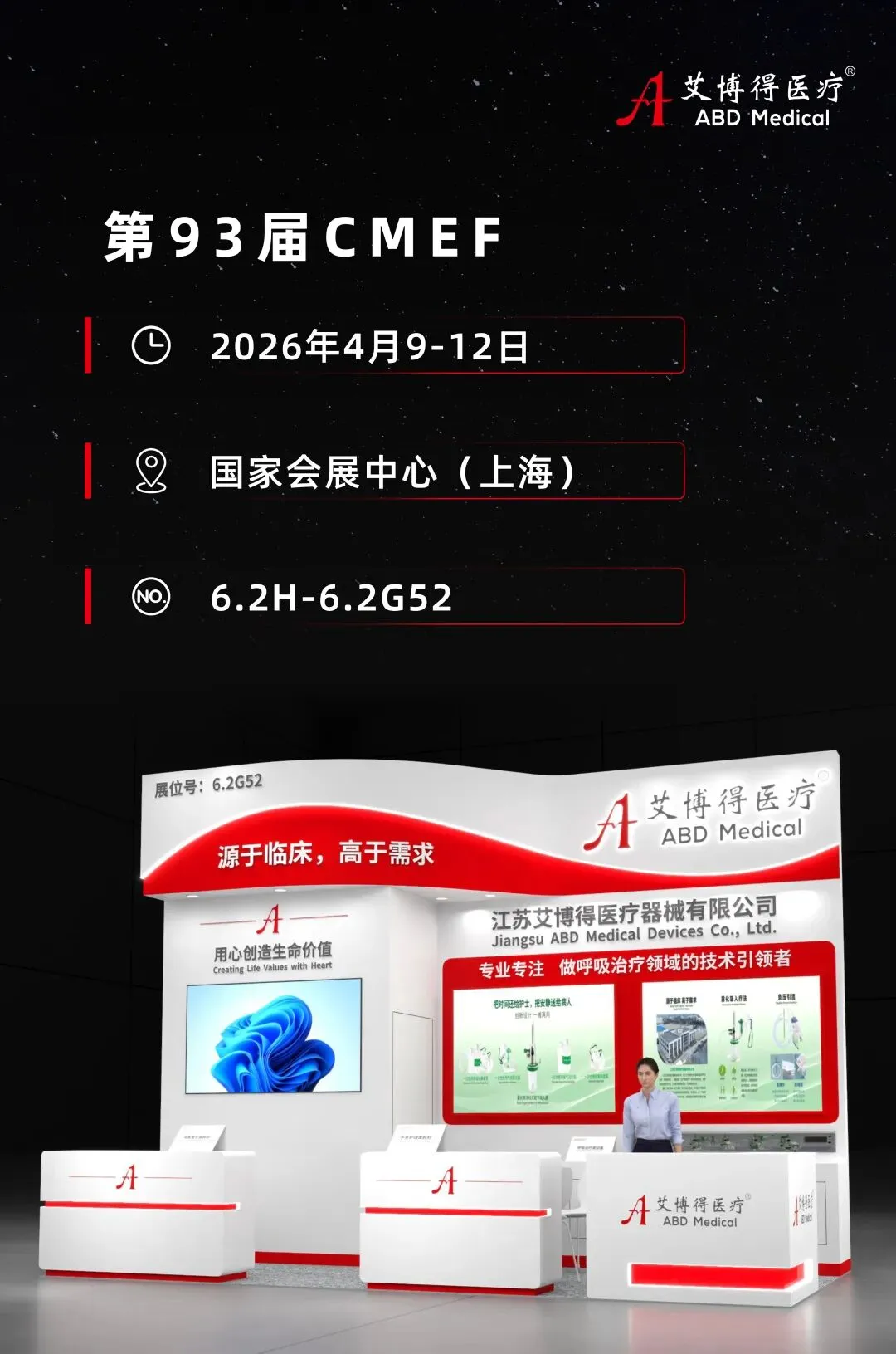 4月9日-12日,第93届中国国际医疗器械(春季)博览会(CMEF)在上海国家会展中心持续进行。展会进入第三天,江苏艾博得医疗器械有限公司展位热度依旧高涨,凭借全谱系呼吸治疗产品与硬核技术实力,现场洽谈氛围热烈,多项合作意向订单顺利落地,收获行业内外高度认可。