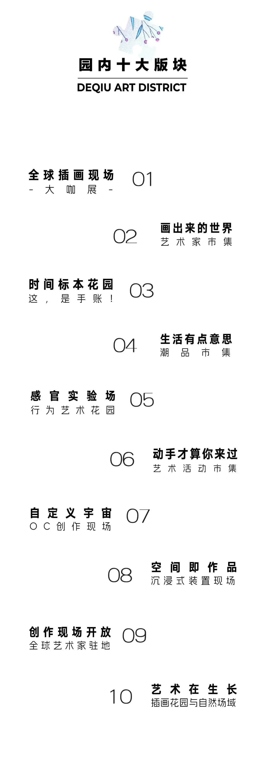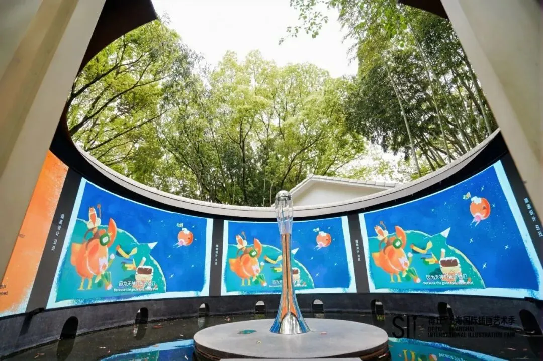 十大艺术花园、林荫步道,在花园里看展、逛集、发呆,治愈感拉满。本区域以自然景观为基础,将插画艺术嵌入花园、步道与水系空间之中,构建一个开放且可漫游的艺术场域。作品不再以独立个体呈现,而是与环境共同生成,使观看行为转化为一种持续的感知体验。通过时间、气候与自然变化的参与,艺术在此呈现出“生长性”,形成区别于传统展览空间的沉浸式体验路径。