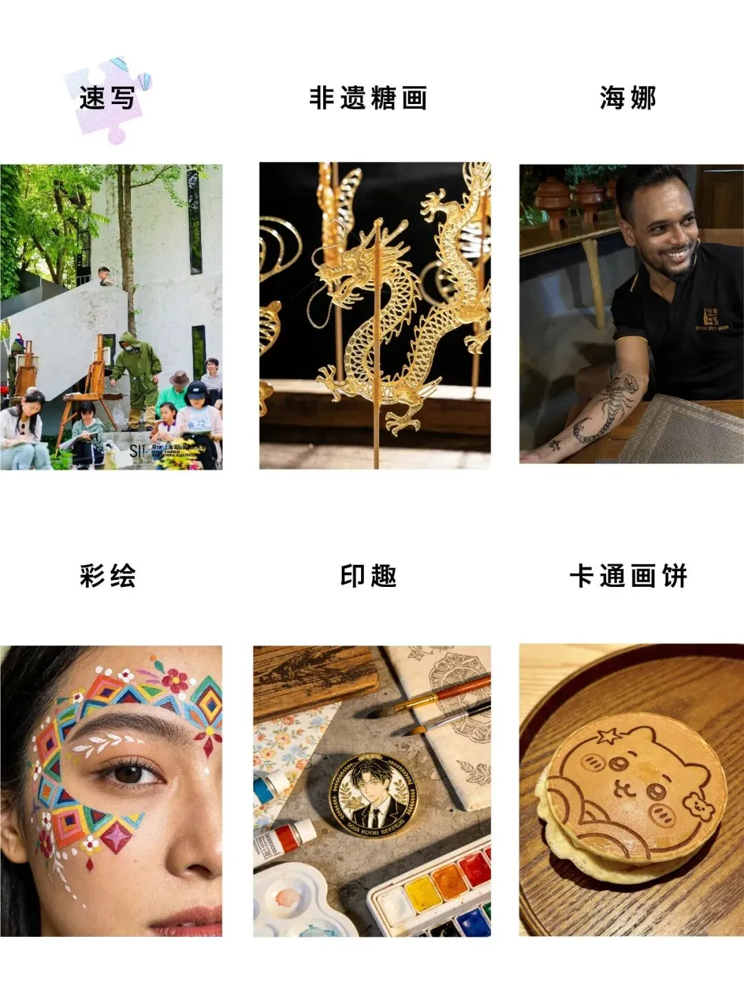 在这里,创作不再属于少数人。从手绘、海娜到各种即时生成的艺术体验,每一次落笔、每一次尝试,都是作品发生的瞬间。带走的,也不只是一次体验,而是一段真正属于你的“现场痕迹”。