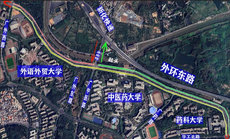 (一)外环东路东往西方向(华工北路至广外西路段)慢车道(右侧车道);
