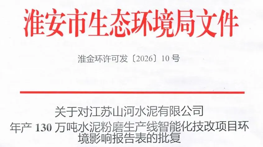 近日,江苏省淮安市生态环境局发布关于对江苏山河水泥有限公司年产130万吨水泥粉磨生产线智能化技改项目环境影响报告表的批复。