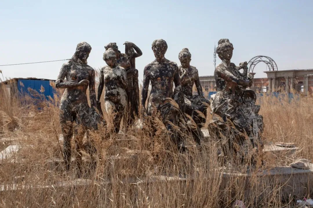 ▲ 牛宝森《池亭苍苔》系列,天津市滨海新区荒废的雕塑,60×80cm,2021.4