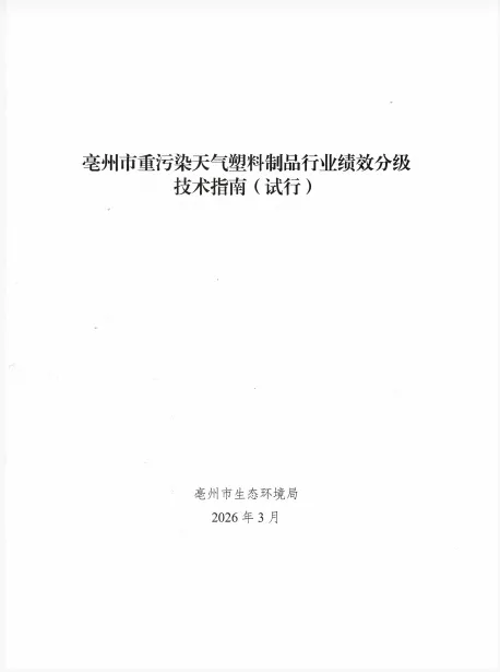 为切实回应塑料制品企业绩效升级诉求,精准落实重污染天气差异化管控,市生态环境局出台了《亳州市重污染天气塑料制品行业绩效分级技术指南(试行)》(以下简称“《技术指南(试行)》”),以精准政策赋能,促进塑料制品企业高质量发展,推动营商环境持续优化,实现企业发展与生态保护双向共赢。