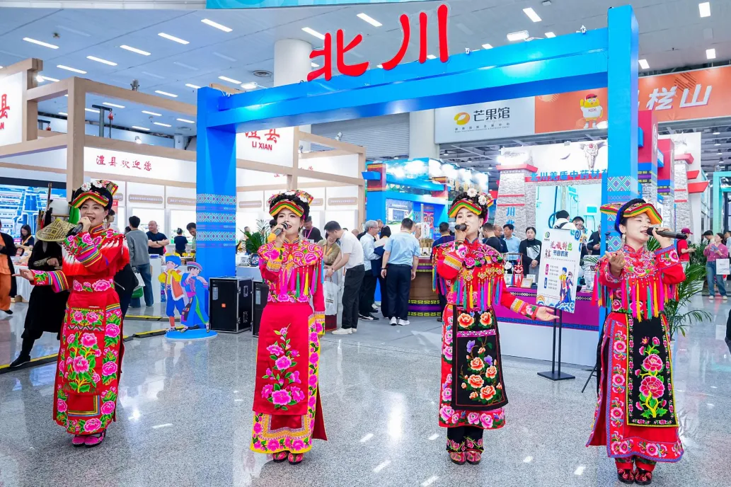 走进北川展区,仿佛开启了一场别开生面的羌族文化之旅。特色的羌族舞蹈与中国古典音乐在现场轮番上演,浓郁的民族风情吸引了无数专业观众驻足欣赏。展区内,充满四川特色的熊猫挂件与具有安神、驱蚊等功效的中药香囊更是成为了“抢手货”,让往来客商爱不释手。