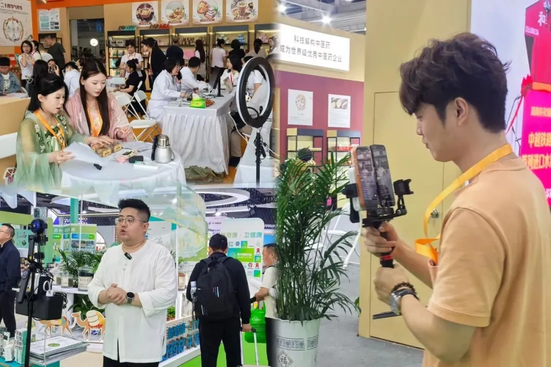 因为现场接待爆满,很多展商干脆在展位一角架起了补光灯,开启了直播带货模式。借着本届博览会的超高流量热度,主播们在镜头前不仅向老铁们展示着高品质的药材切片,还不时被现场的热情观众打断互动。有展商笑称:“本来是想来线下招商的,结果没想到直播账号两天涨了不少粉,这波曝光真是意外之喜!”