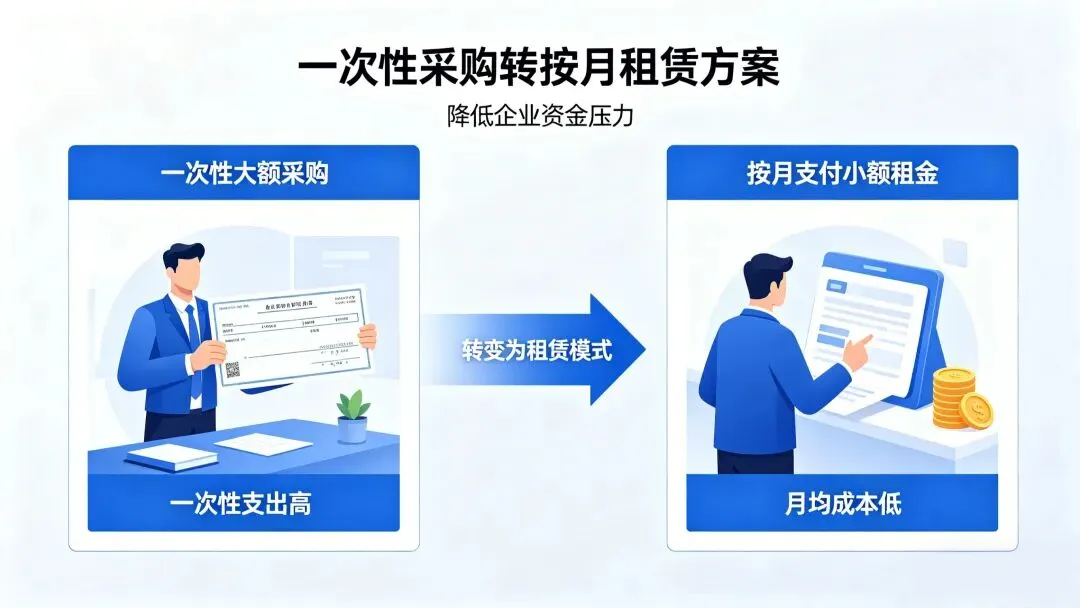 对企业而言,租赁模式最大的好处,就是把一次性大额采购,变成按月支付的小额租金,不用沉淀大量资金,也不用承担资产折旧、闲置的损失,相当于给企业筑牢了抗风险的“安全垫”。